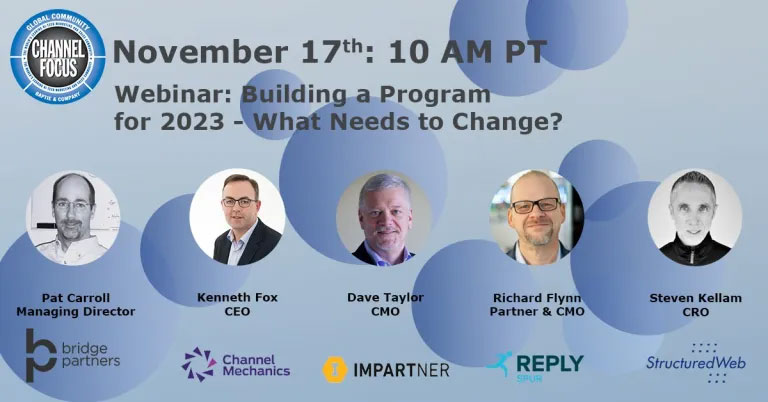 This is exactly what I spoke about with a stellar panel of channel leaders during our Channel Focus Webinar on Thursday, Nov. 17. I was joined by panelists Pat Carroll, Managing Director of Bridge Partners, Kenneth Fox, CEO of Channel Mechanics, Dave Taylor, CMO of Impartner and Richard Flynn, Partner & CMO of Spur Reply.