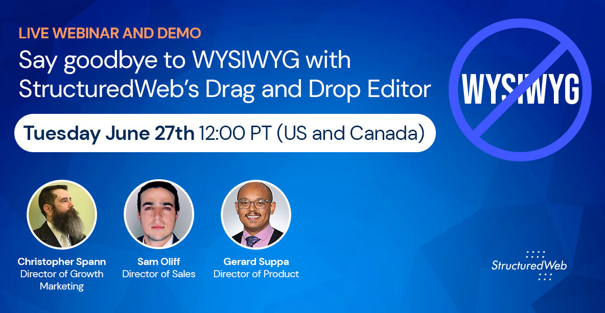 Join us on June 27th at 12:00 PT for a webinar and live demo to discover how StructuredWeb’s Drag and Drop Editor can revolutionize your content creation process.