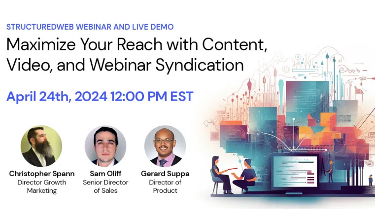 Discover how StructuredWeb can amp-up your channel marketing efforts with our live webinar syndication tools. Join us for an interactive session and live demo of StructuredWeb’s webinar syndication capabilities on April 24th, 2024, at NOON EST. Don’t miss this chance to take your channel marketing strategy to unprecedented heights. Register today!